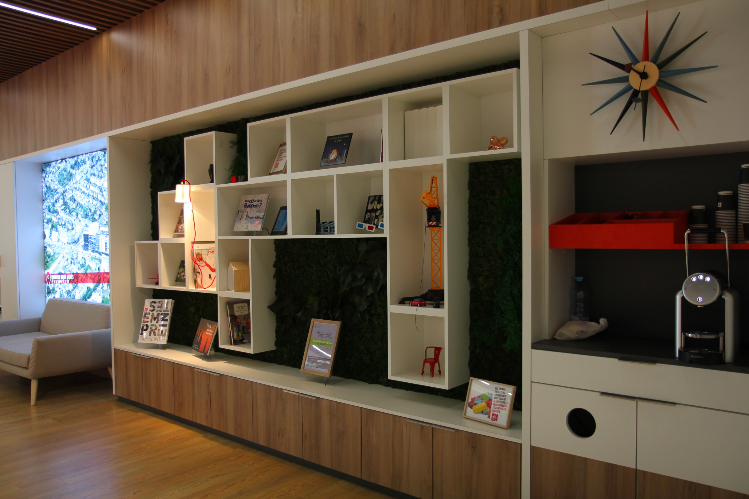 Ancrée au cœur de son territoire, cette agence assume pleinement sa personnalité. La convivialité est le maître mot de ce nouvel espace bancaire, qui invite les clients à entrer et passer du temps avec leur conseiller.